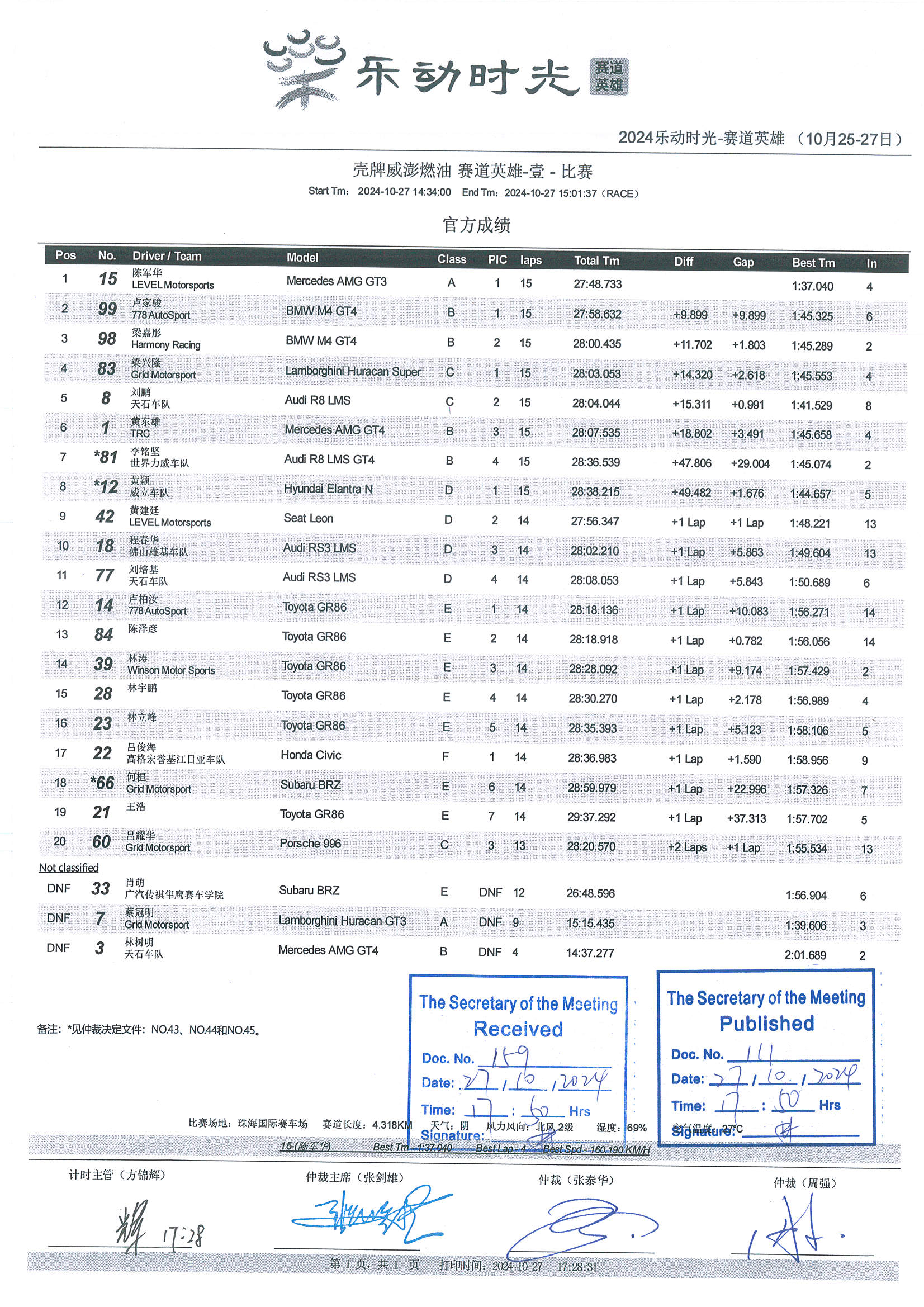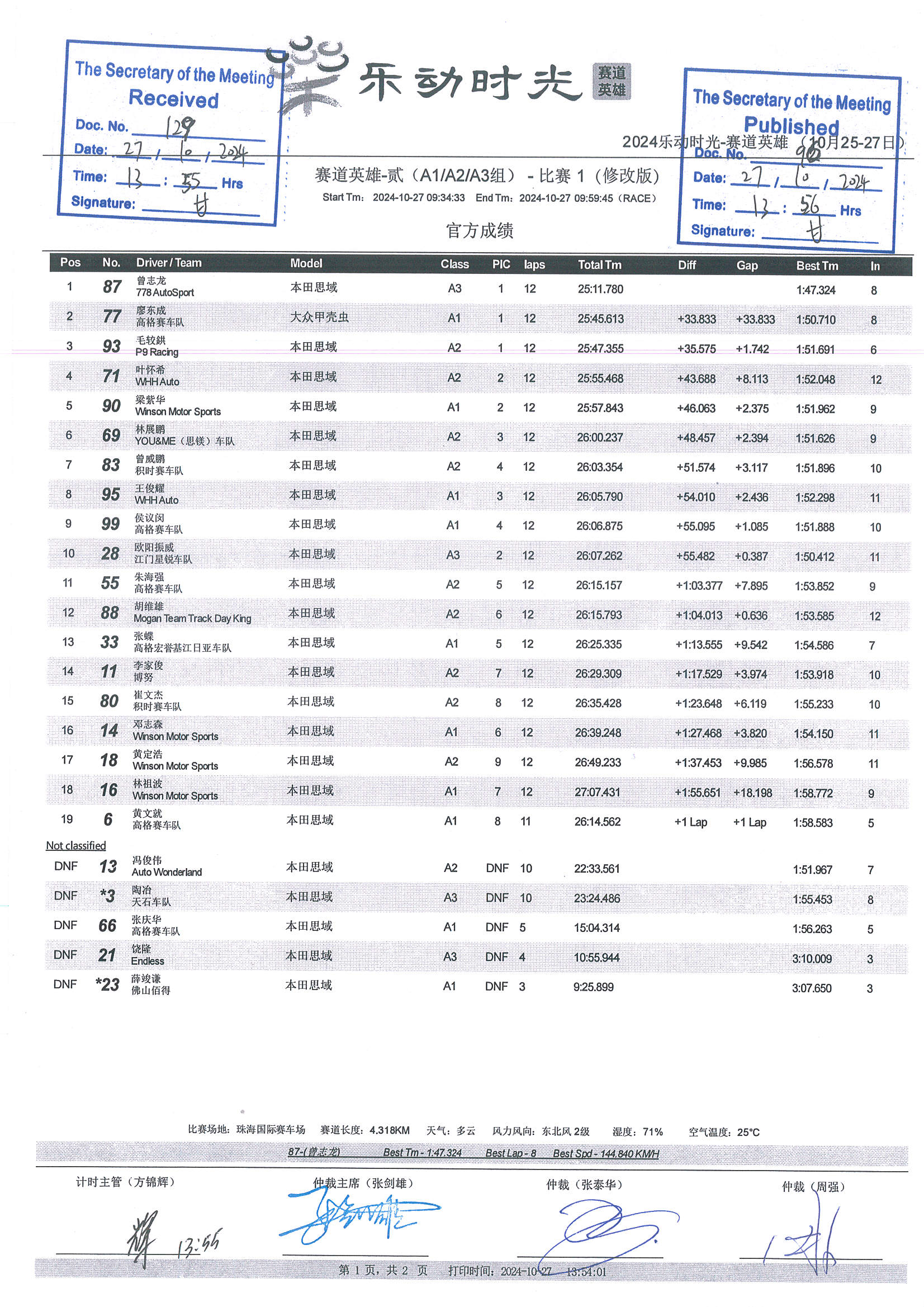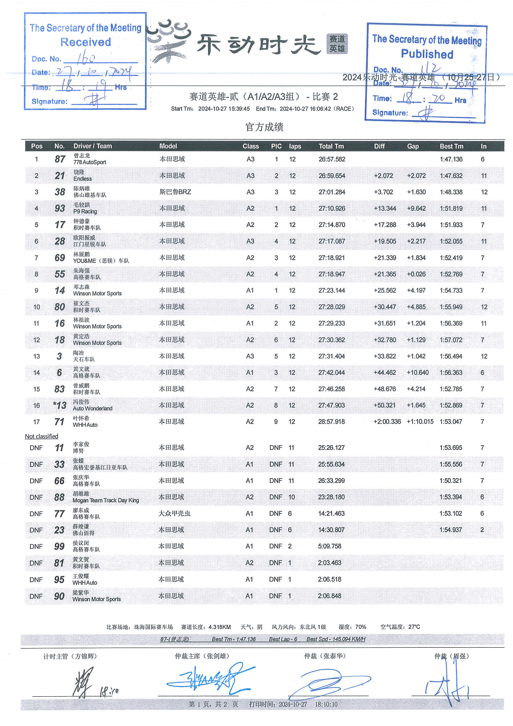 2024 October Circuit Hero Two A1A2A3 Race2 Grid |