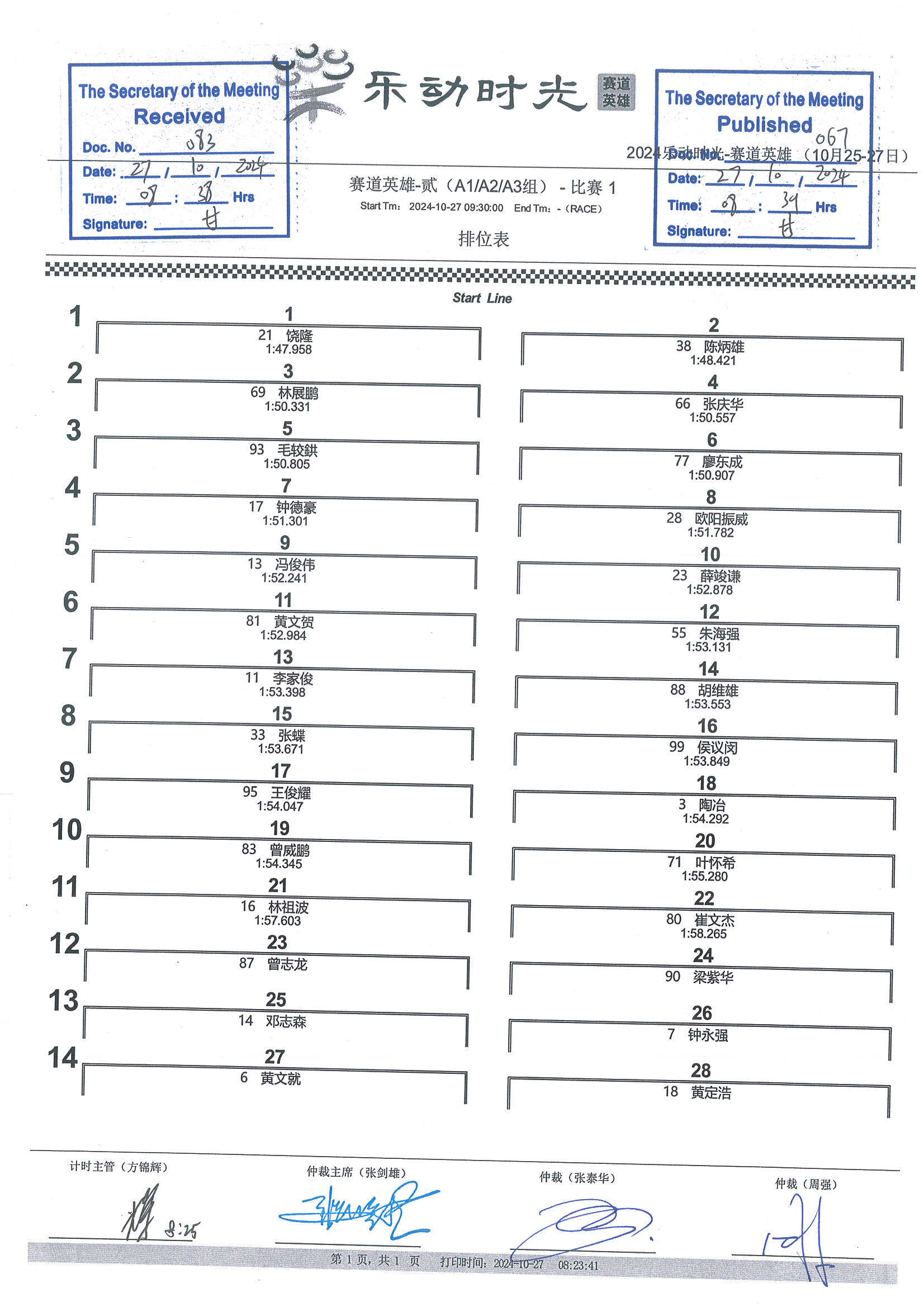 2024 October Circuit Hero Two A1A2A3 Race1 Grid |