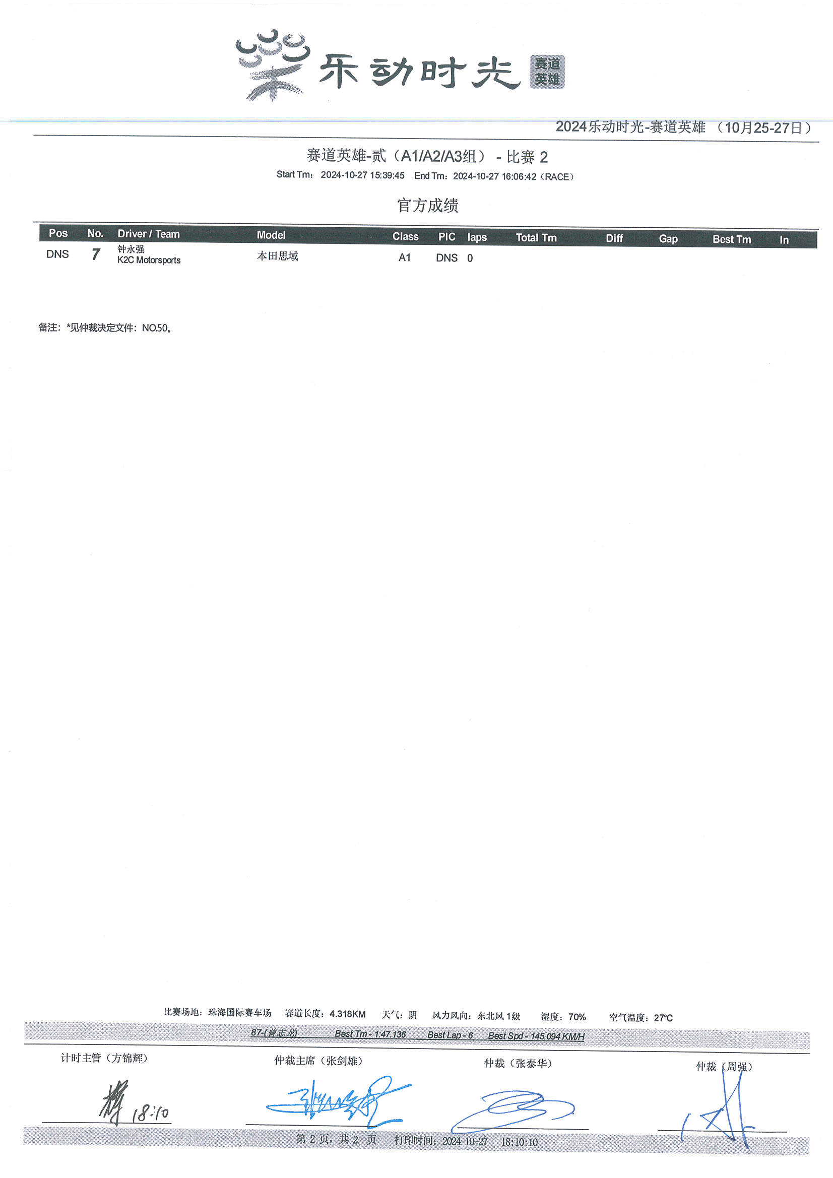 2025 Oct Circuit Hero-Two Race2 Result |