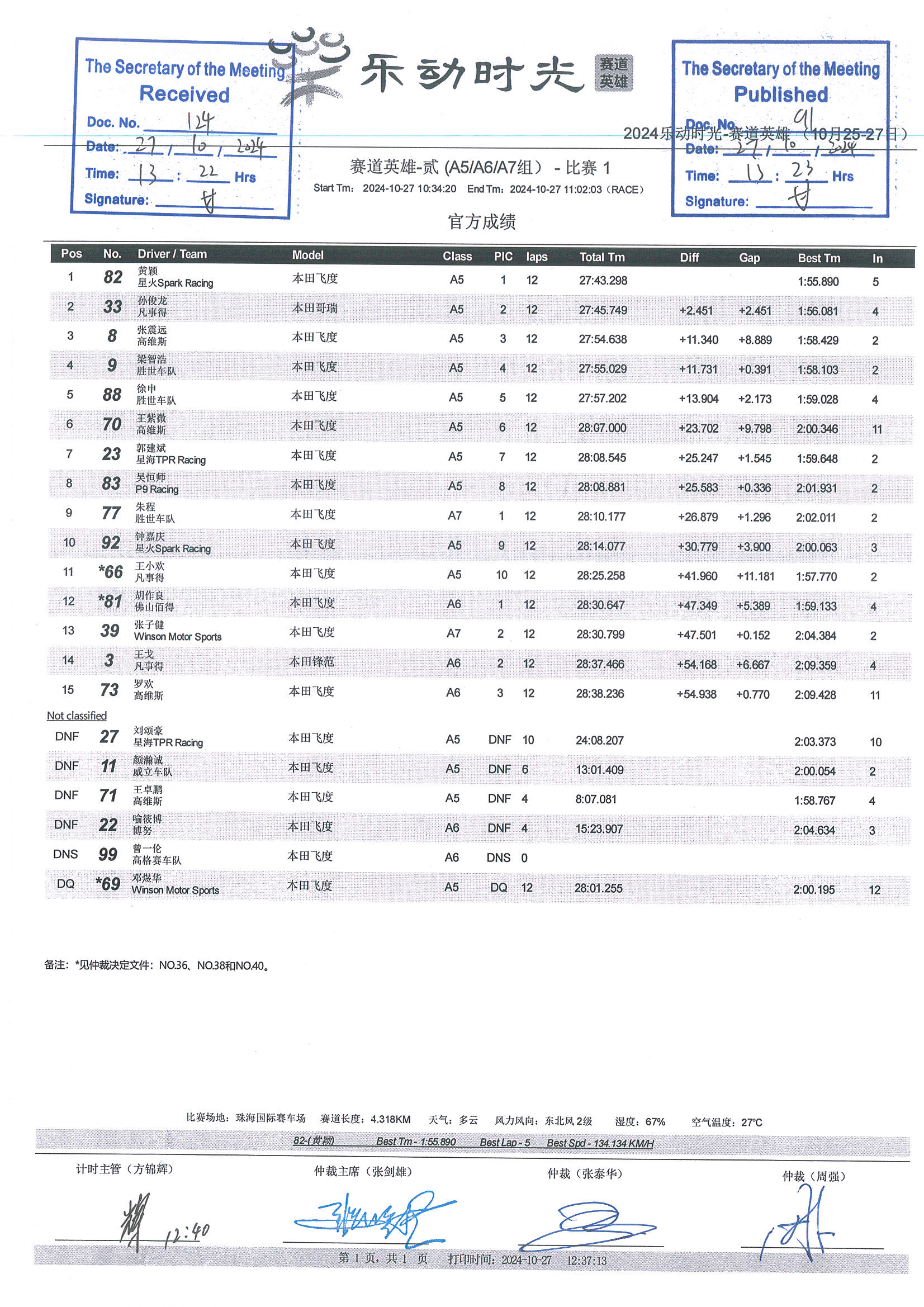 2024 October Circuit Hero Two A5A6A7 Race1 Grid |