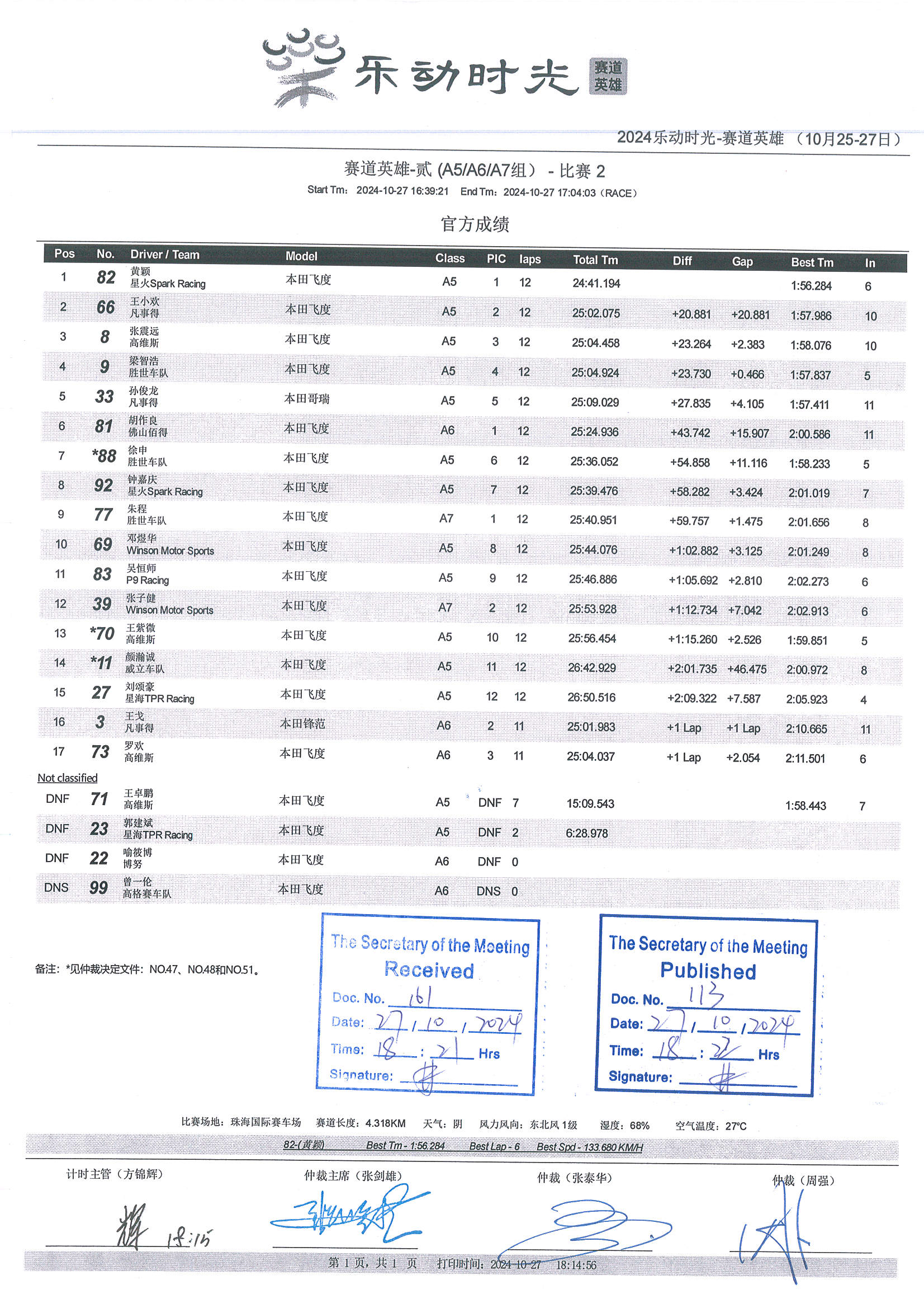 2024 October Circuit Hero Two A5A6A7 Race2 Grid |