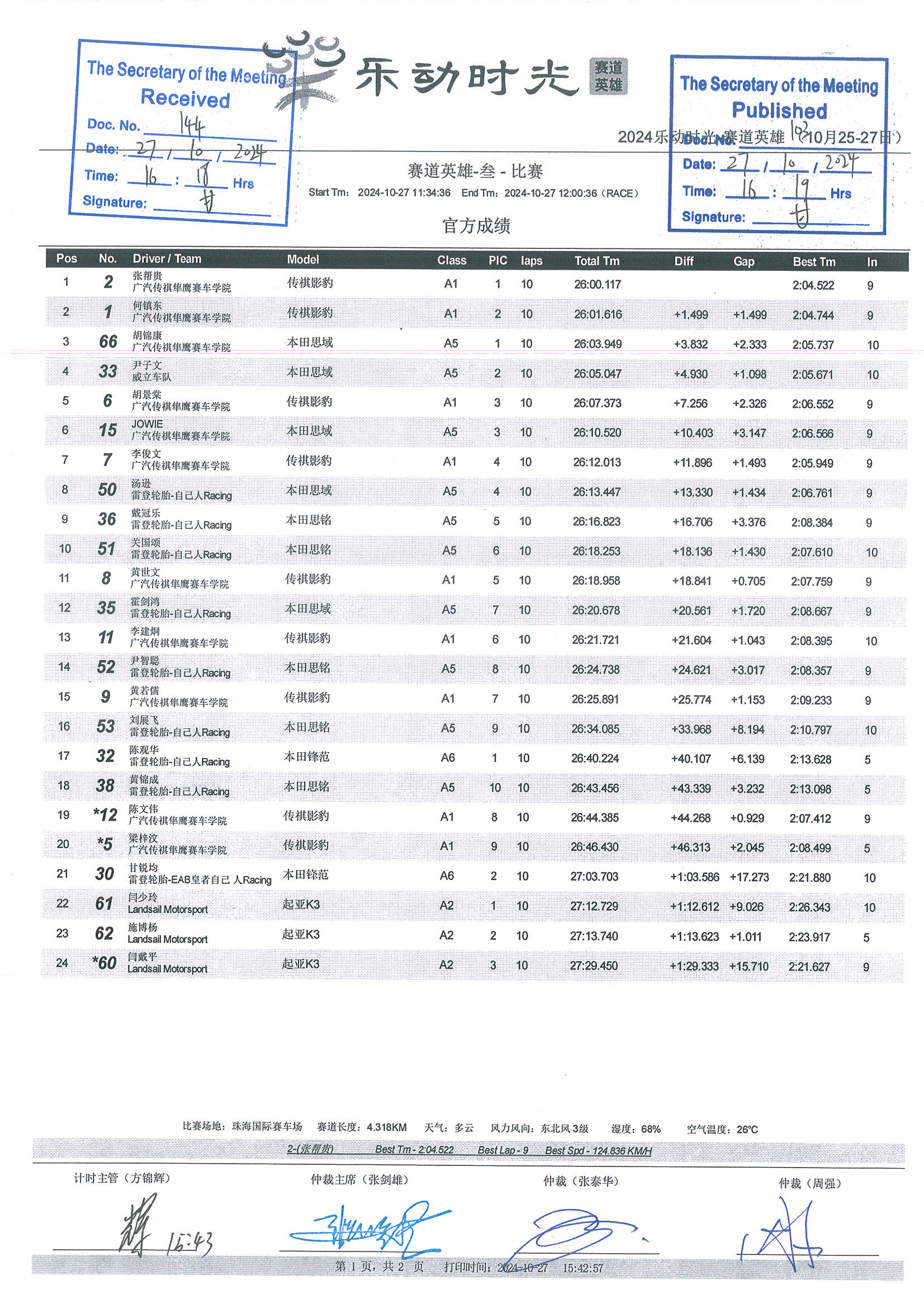 2024 October Circuit Hero Three Race Grid-P1 |