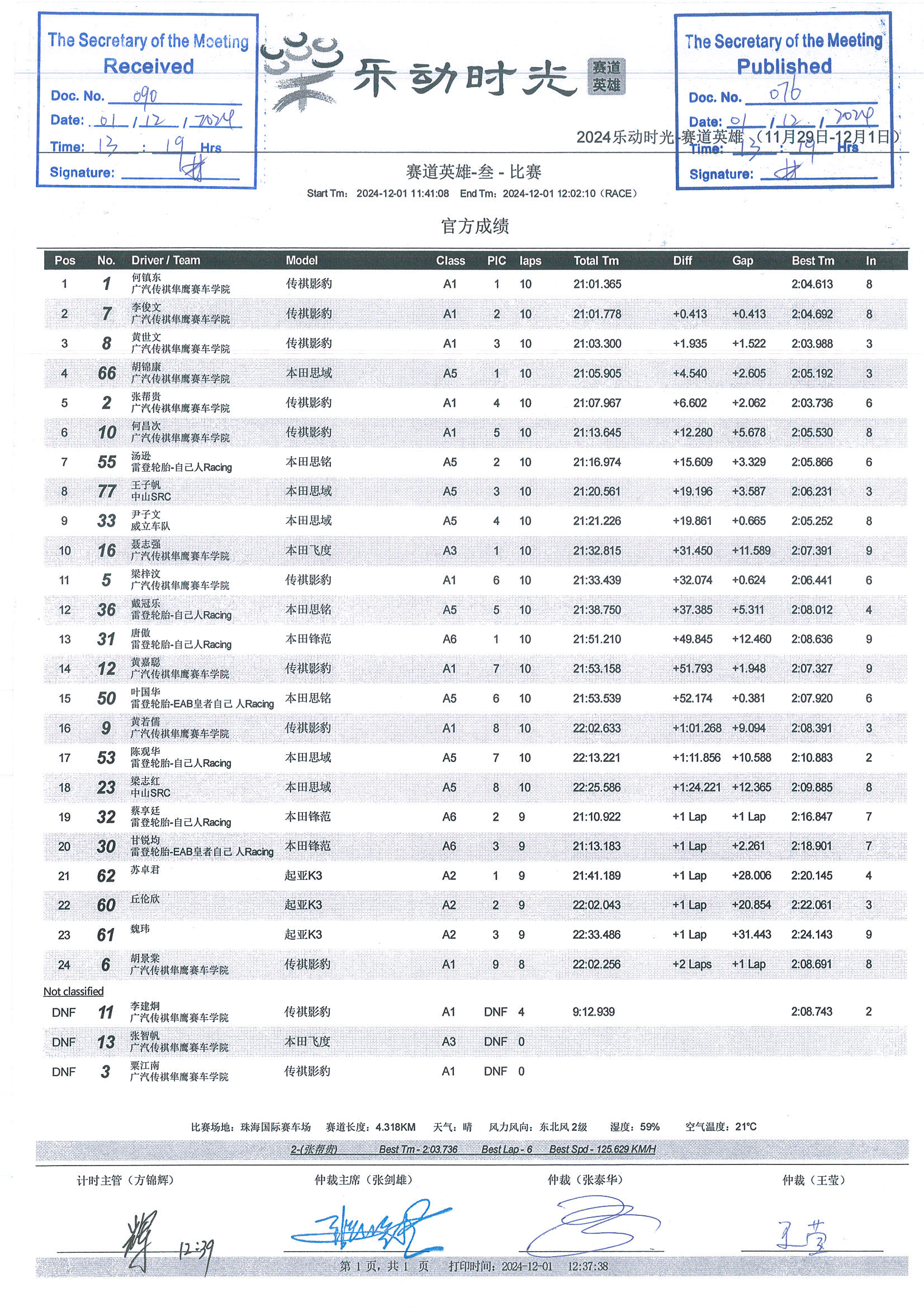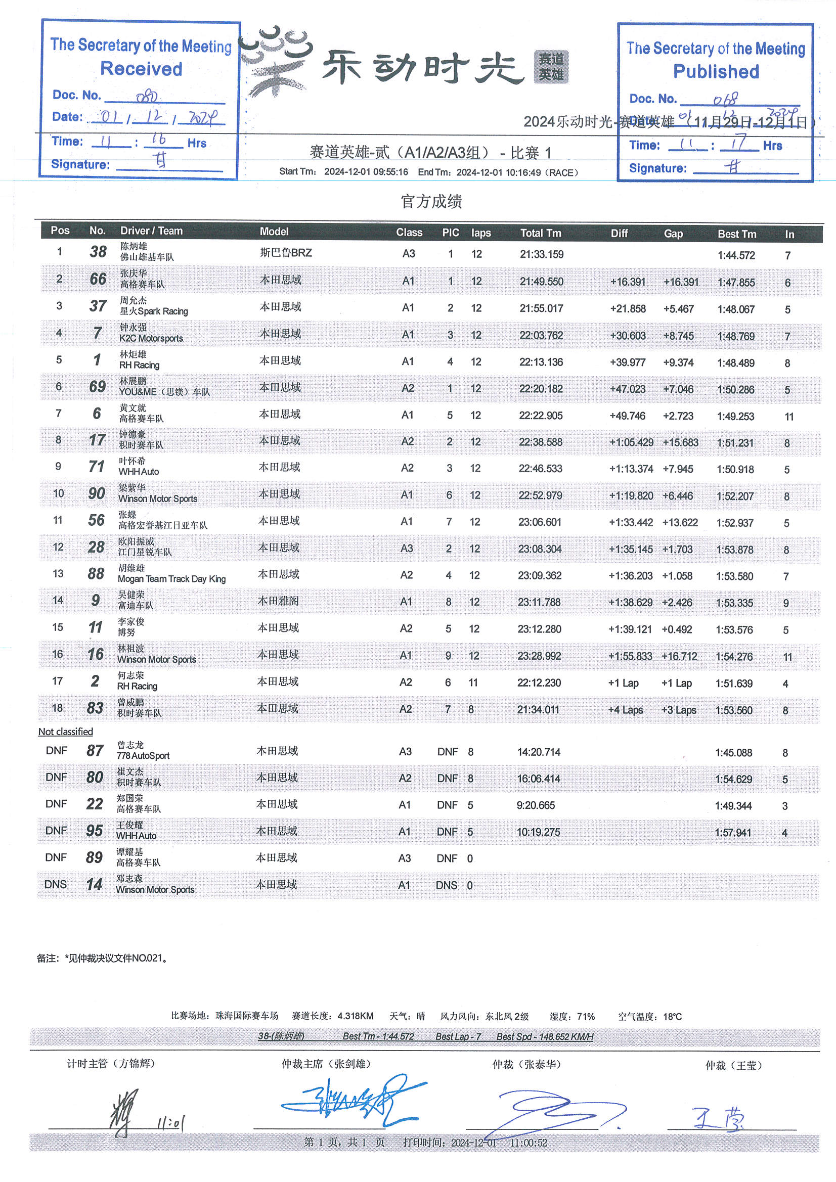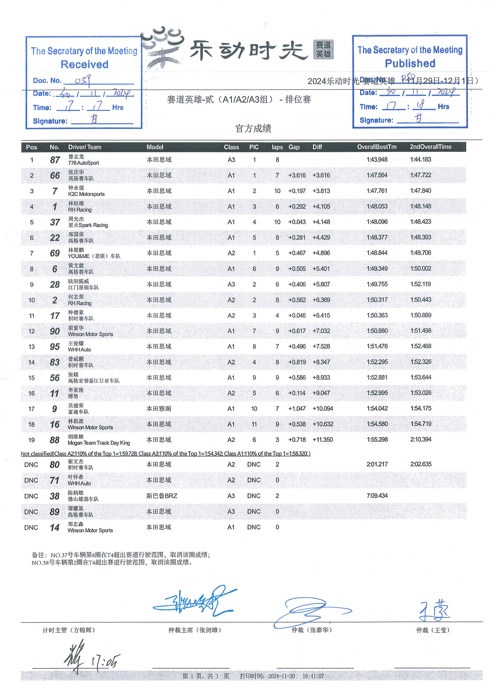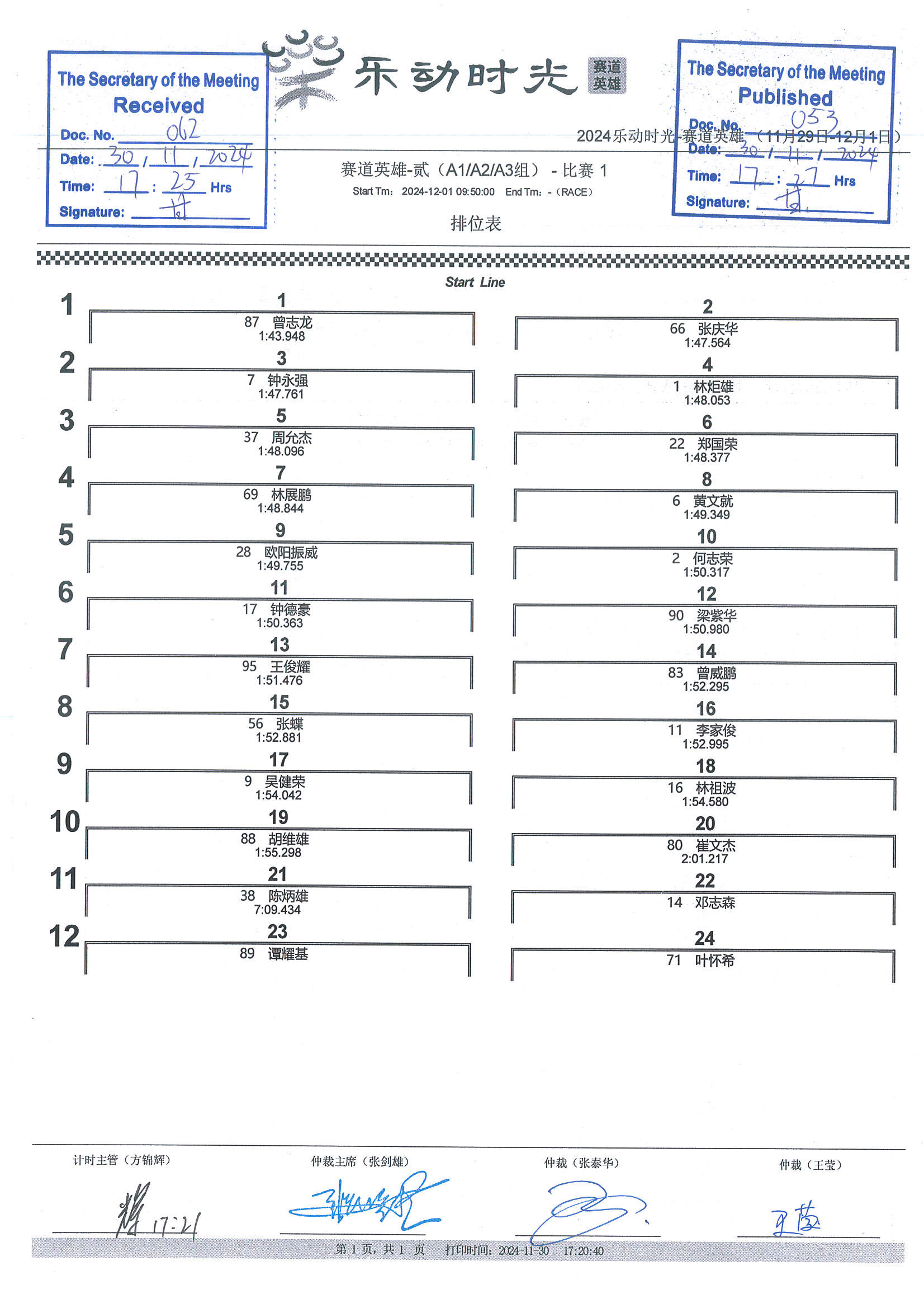2024 December Circuit Hero Two A1A2A3 Race1 Grid |