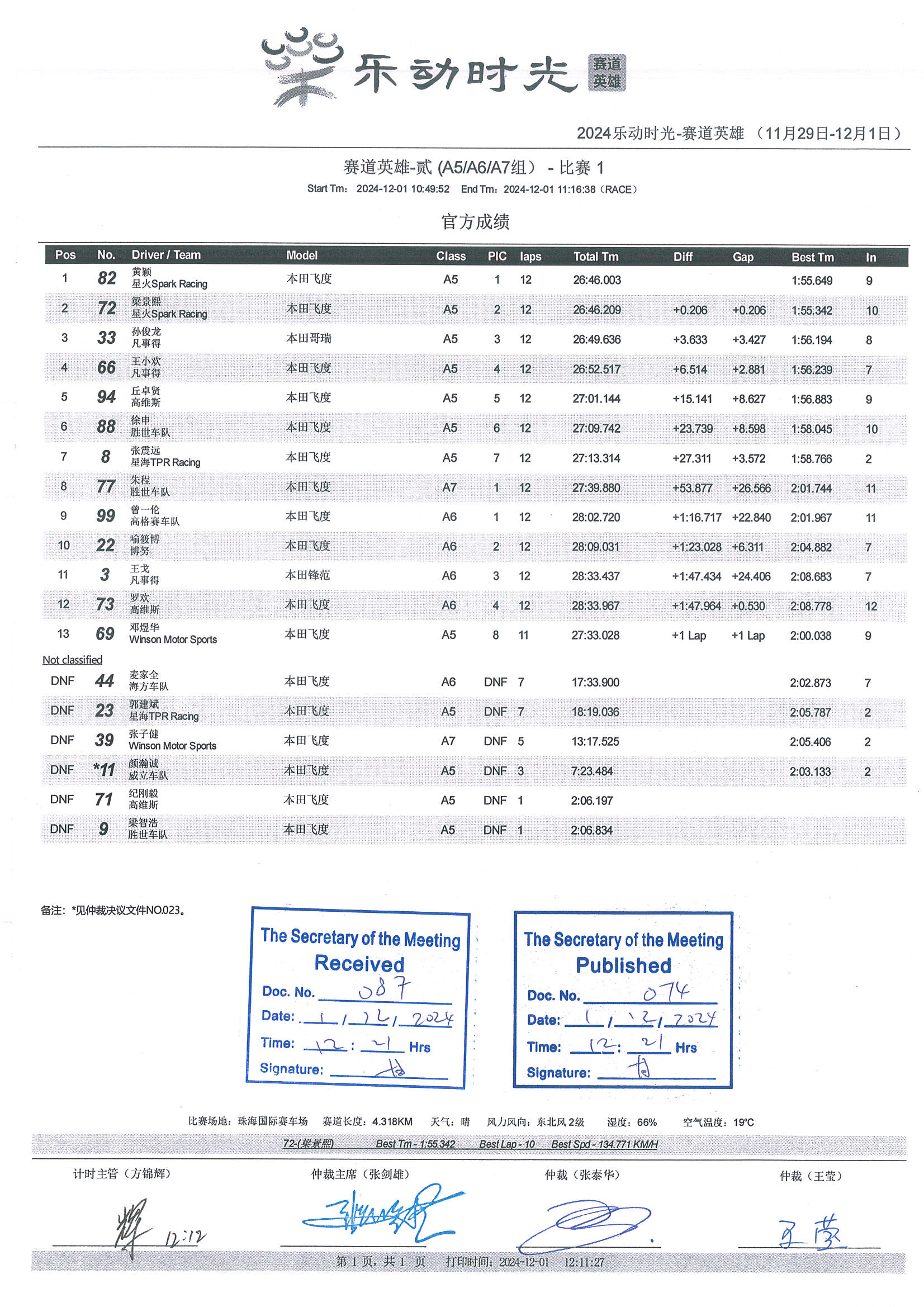 2024 December Circuit Hero Two A5A6A7 Race1 Grid |