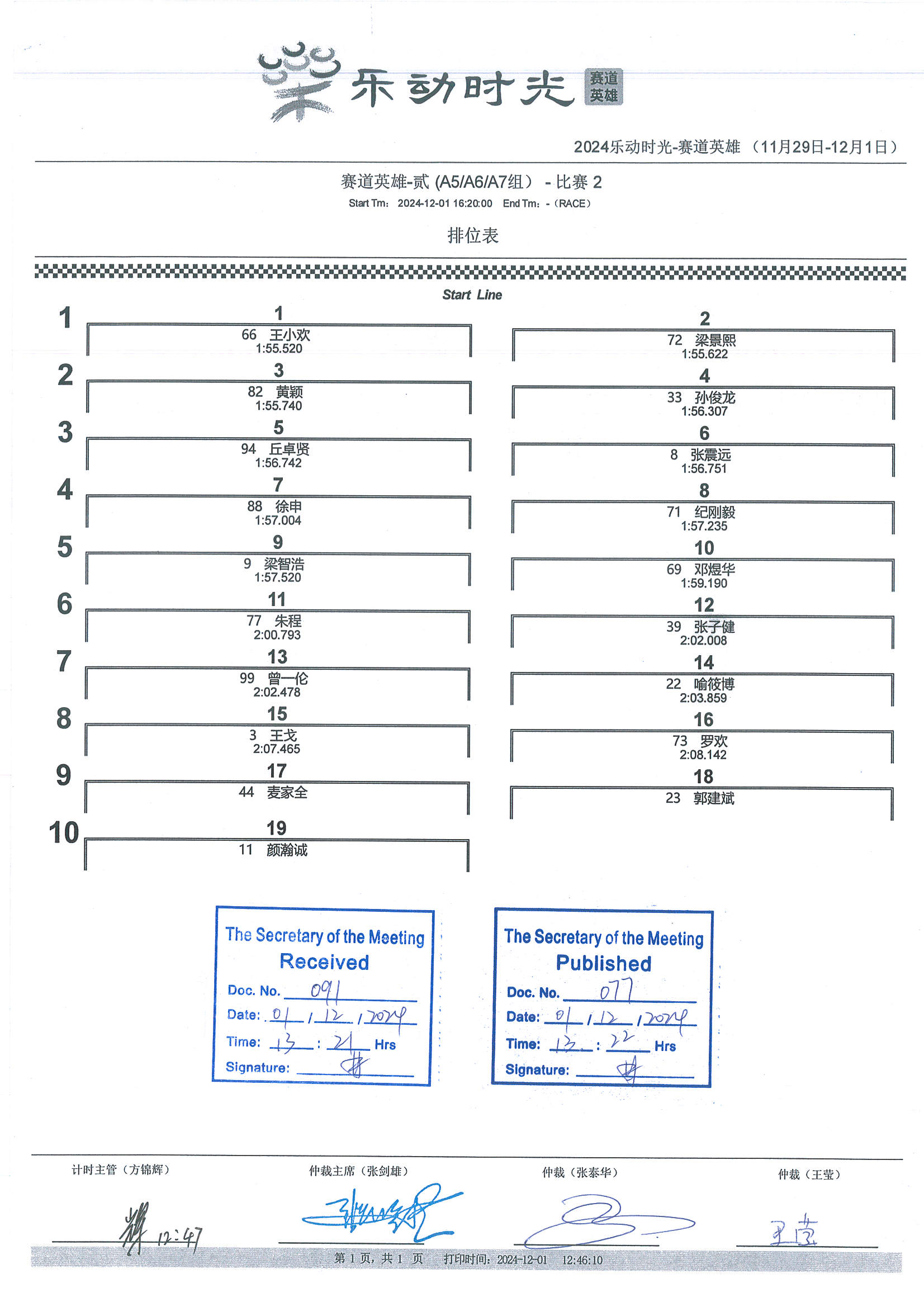 2023 December Circuit Hero Two A5A6A7 Race Grid |