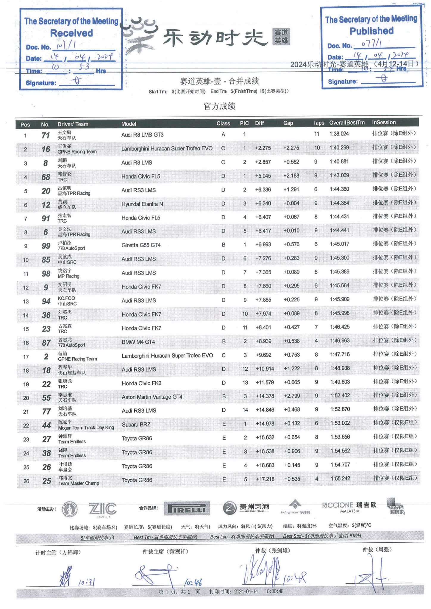2024 April Circuit Hero One Race Grid-P1 |