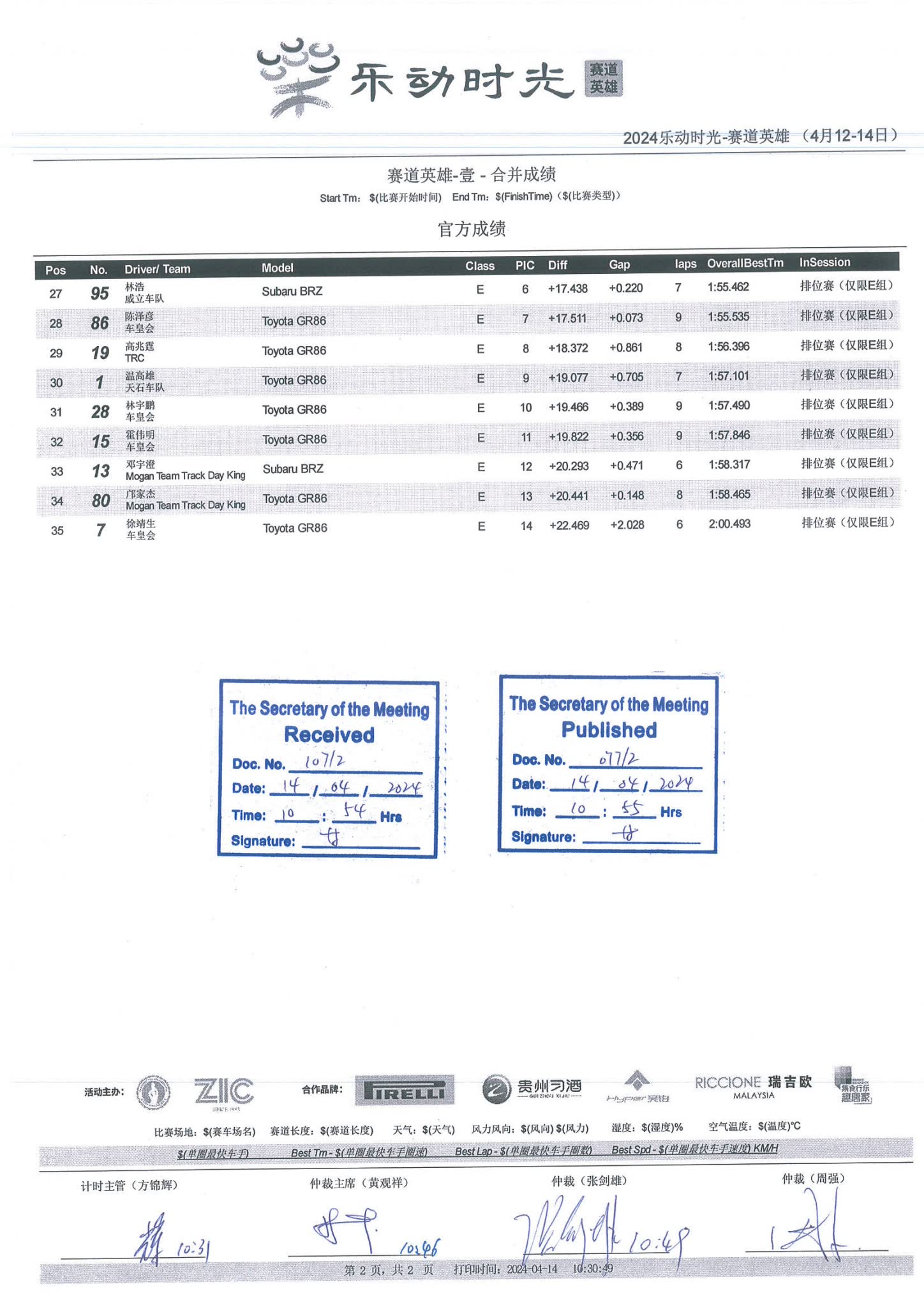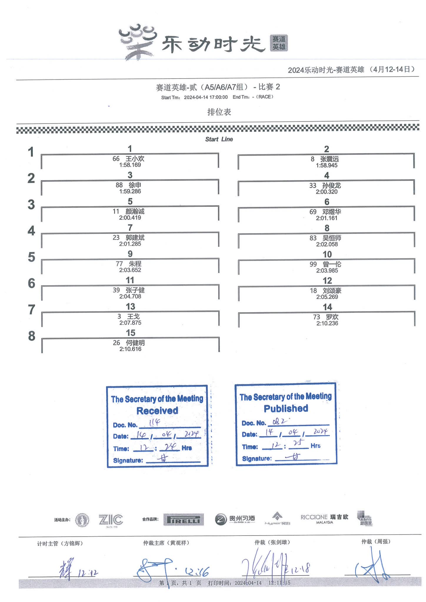 2024 April Circuit Hero Two A5A6A7 Race2 Grid |