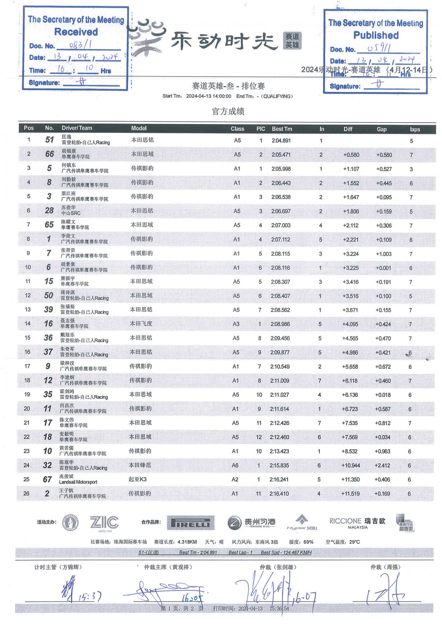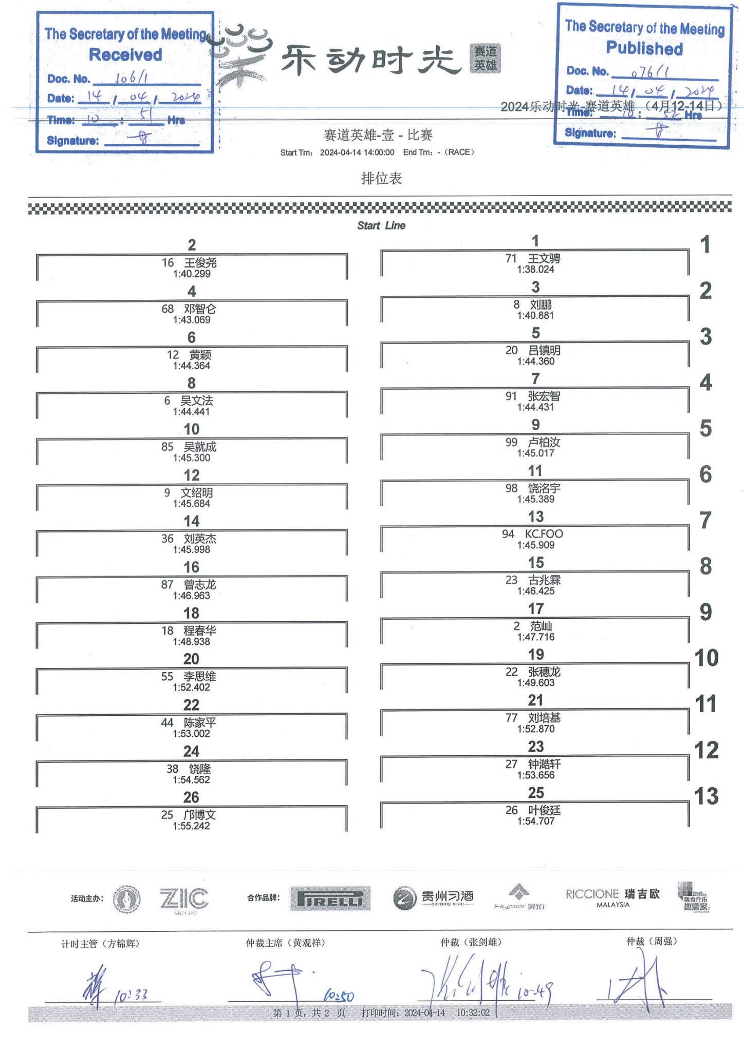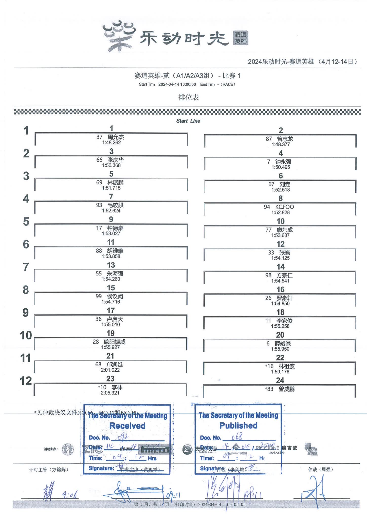2024 April Circuit Hero Two A1A2A3 Race1 Grid |