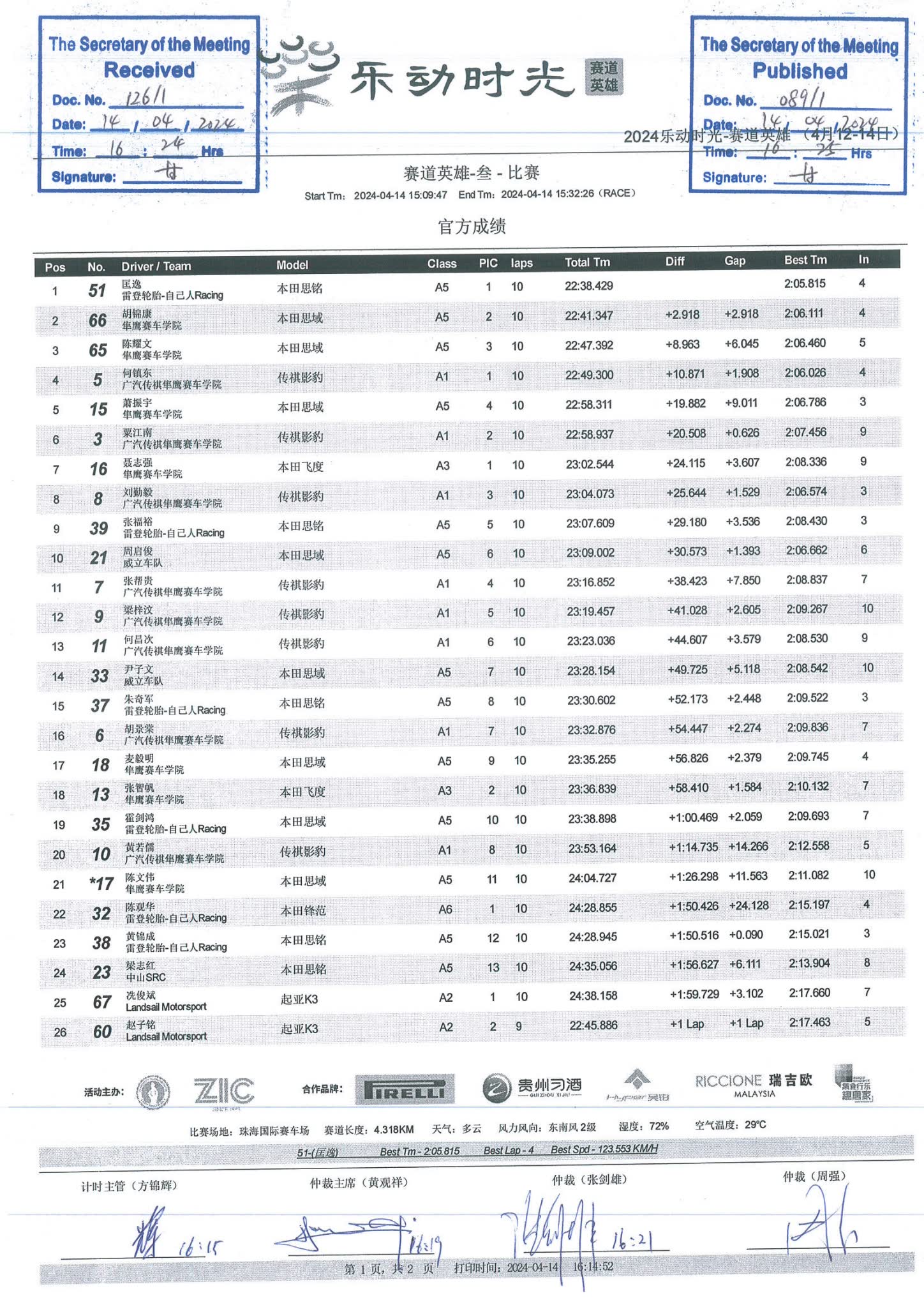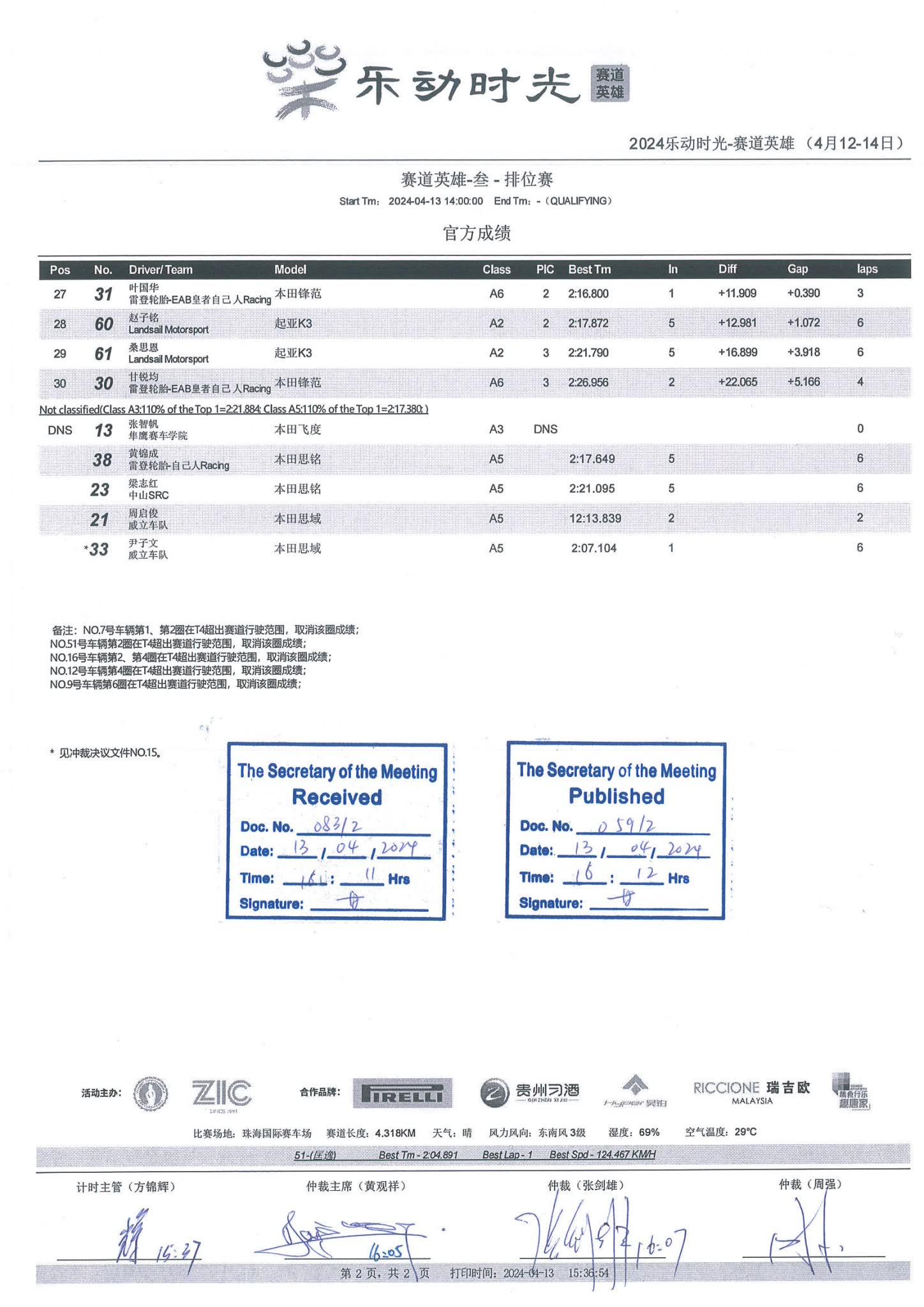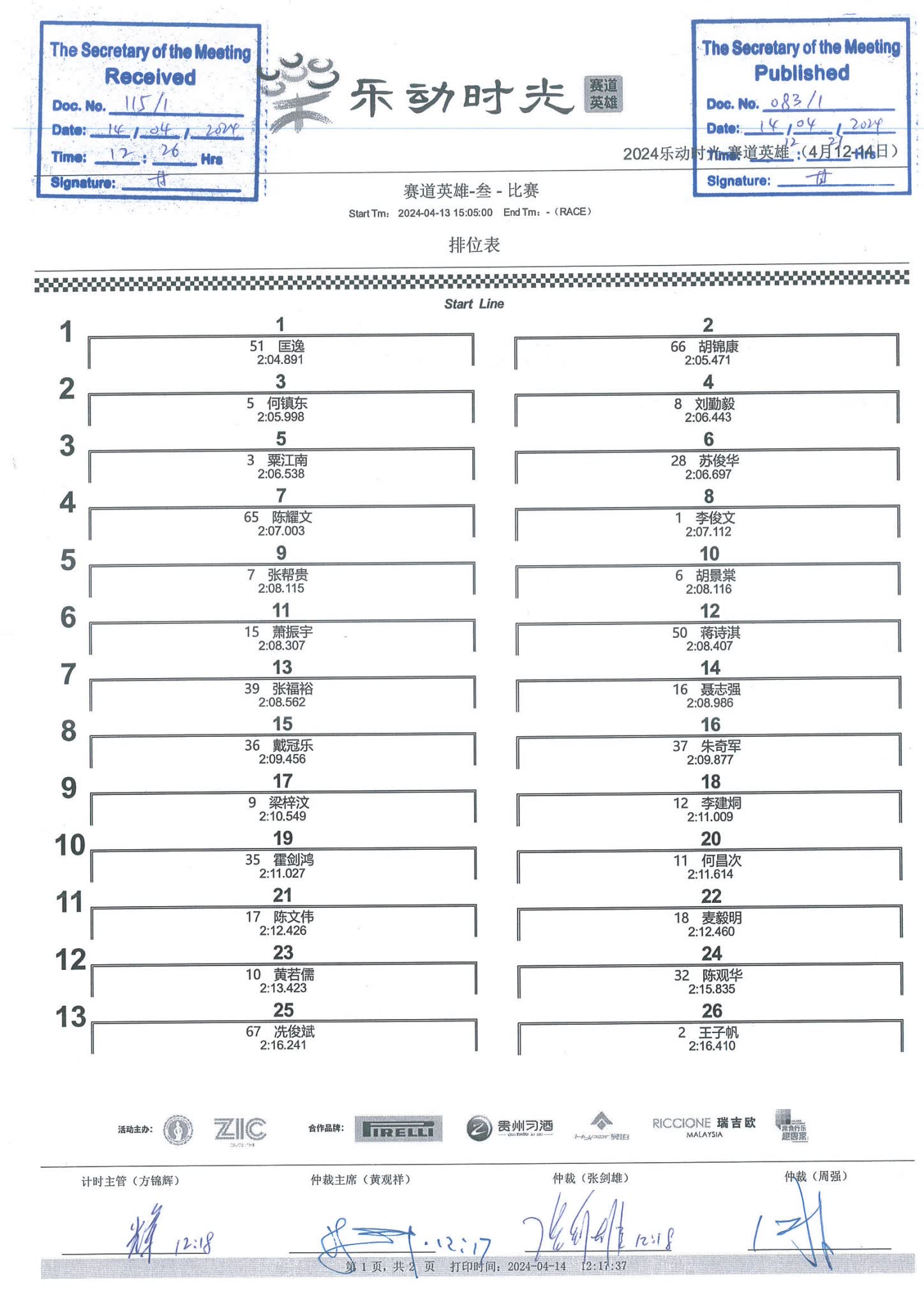 2024 April Circuit Hero Two A1A2A3 Race1 Grid |