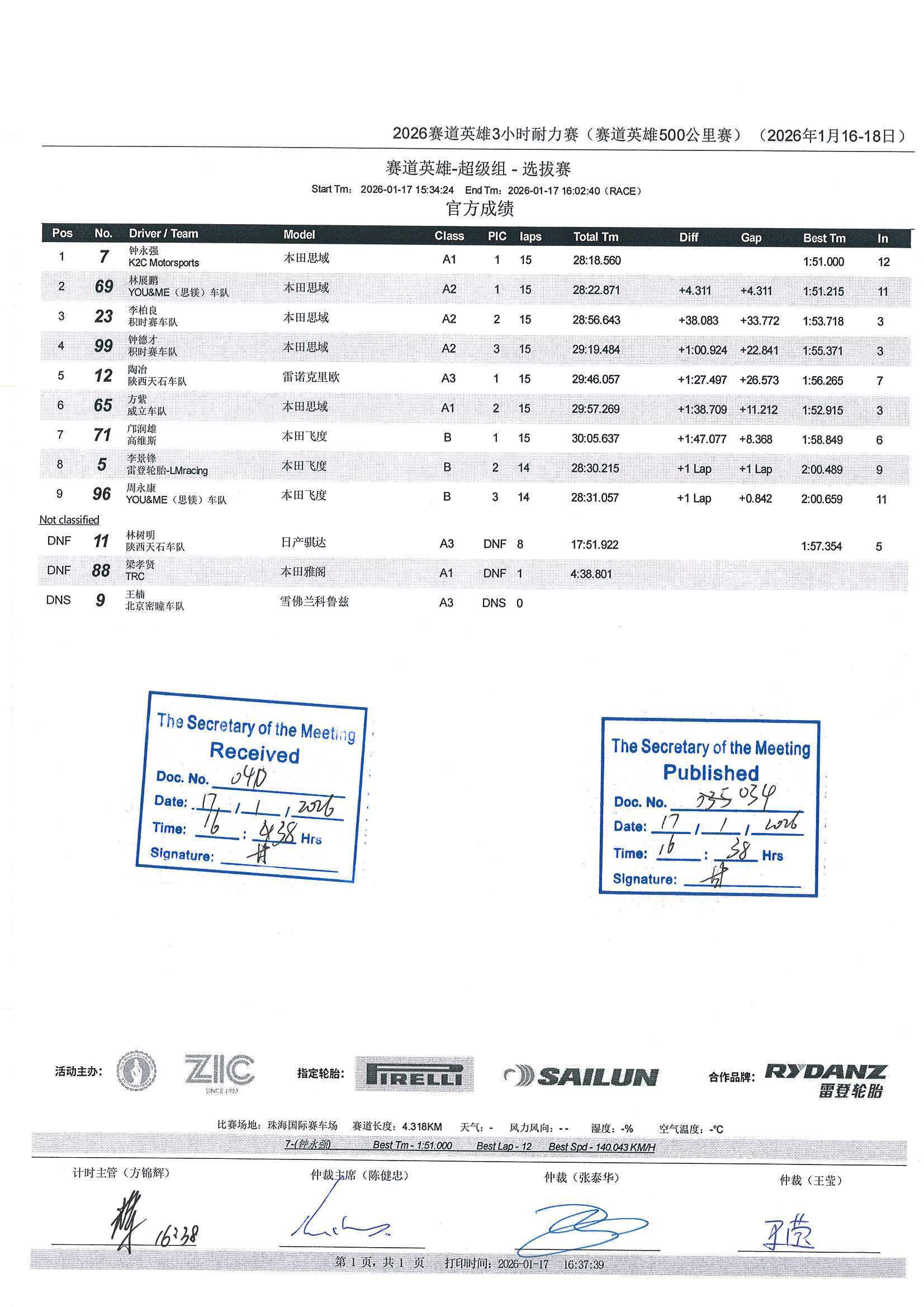 18 Jan 2026 赛道英雄-超级组选拔赛精彩纷呈,钟永强捧得全场第一